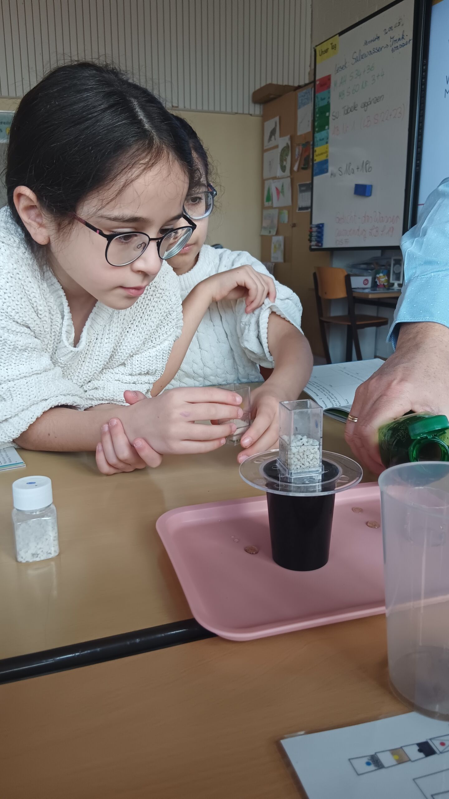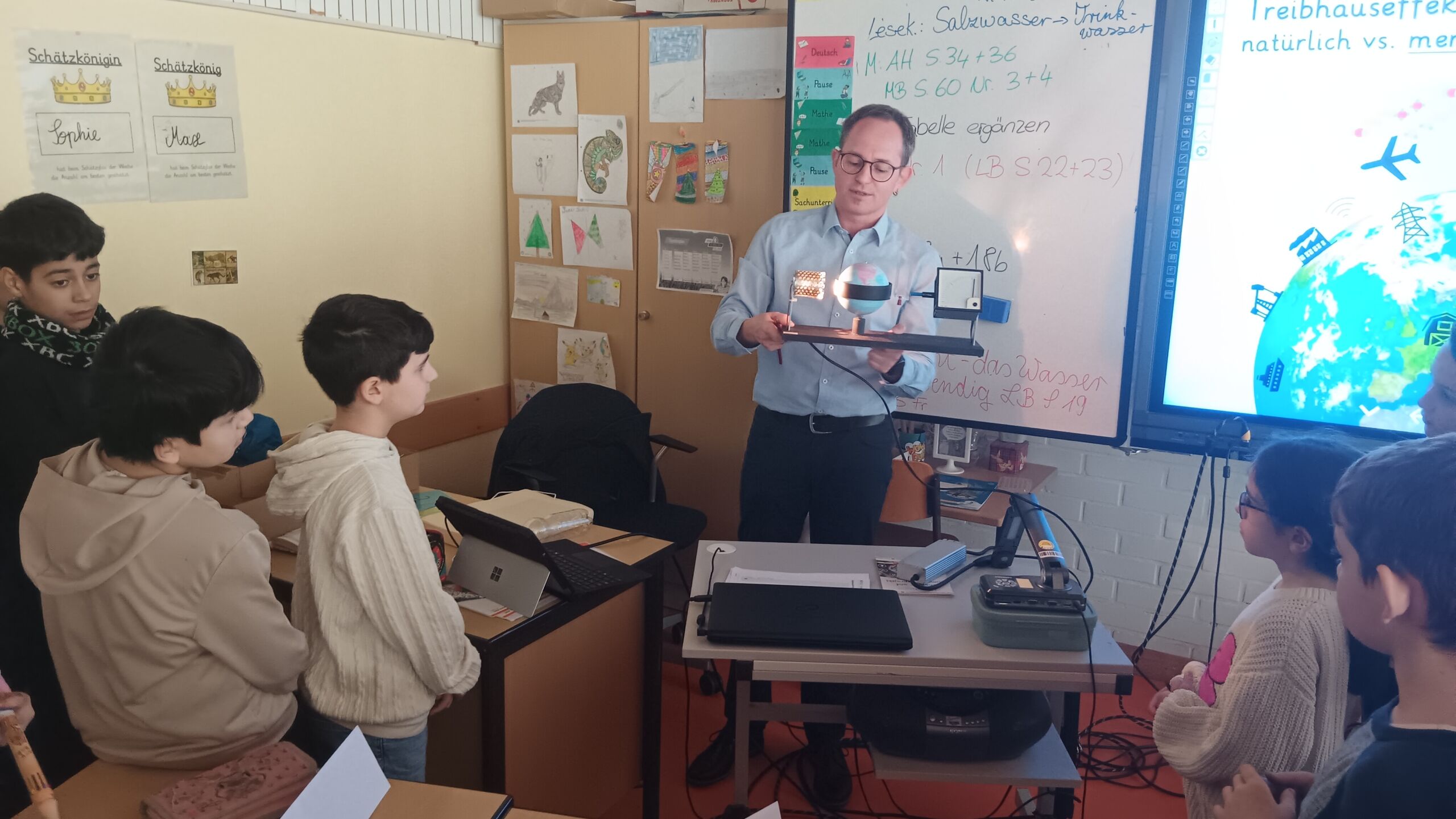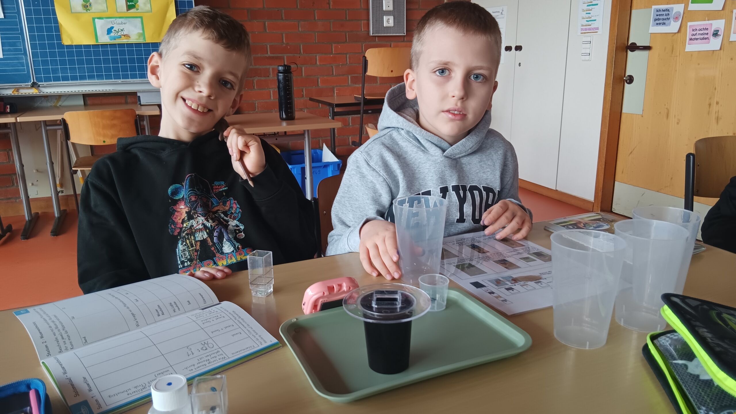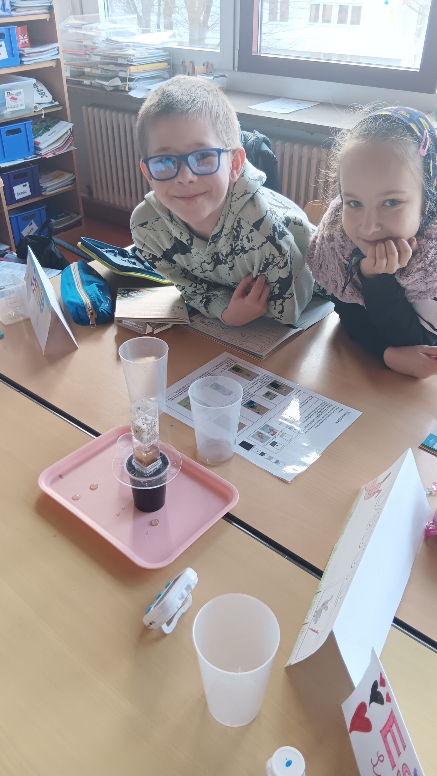 Dieser Tage war die Klimaschutz- und Energieagentur der Region Schwarzwald-Baar-Kreis zu Besuch bei den Drittklässlern und Drittklässlerinnen der Schillerschule Spaichingen. Mit dem vom Land Baden-Württemberg geförderten Programm wurden den Kindern Klima- und Umweltschutz an jeweils einem Schulvormittag nähergebracht. Interaktiv, forschend und mit viel Spaß wurde Wasser in mehreren Stufen gefiltert und gereinigt, gemessen, beobachtet, dokumentiert und entdeckt. Neugierig wurden auch die Zusammenhänge zwischen Treibhausgasen und dem Klimawandel und dessen Folgen betrachtet. Zum Abschluss erhielten die Kinder eine Klimaschutzmedaille nachdem gemeinsam überlegt wurde, was jeder Einzelne tun kann, um umwelt- und klimaschützend unterwegs zu sein.