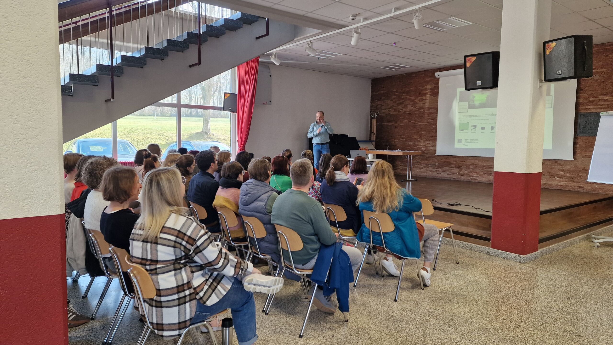 Der Morgen begann mit der Vorstellung des aktuellen Angebots des Kreismedienzentrums durch Roman Rendle. Er präsentierte dem Team ein vielfältiges Repertoire gerade in Bezug auf neue digitale Medienpakete, Technik, Hardware und Software zum Einsatz im Unterricht. Neben Themen wie KI, VR-Labor oder Podcastproduktion, kamen auch Tools zur Sprache, die gerade bezüglich der Frage nach Lizenzen und Urheberrechten bedenkenlosere Einsatzmöglichkeiten im Unterricht eröffnen.
