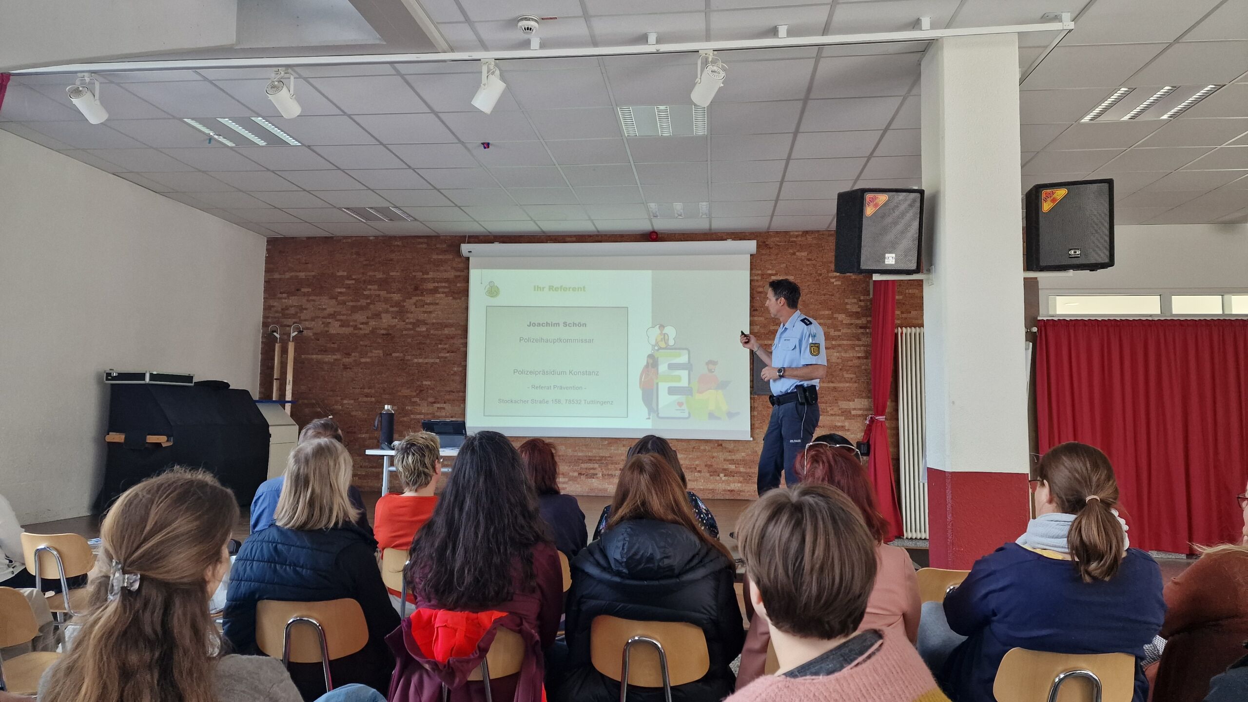 Die Schnittstelle beider Tagespunkte am Vormittag bildete abschließend dann Joachim Schön, Polizeihauptkommissar und Referent, der klare Grenzen, Pflichten und gesetzliche Regelungen im Umgang mit digitalen Medien aufzeigte. Wann dürfen welche Bilder gemacht werden und wann ist welche Handlung strafbar? Wie damit umgehen, wenn Schülerinnen oder Schüler eine strafbare Handlung melden? Wann ist wer bei Fehlverhalten von Minderjährigen im Umgang mit digitalen Medien belangbar? Wie kann Prävention weiter betrieben werden? Die Liste der Fragen die angesprochen und diskutiert wurden, wäre noch erweiterbar, zeigt sie jedoch ganz generell, dass auch Schule immer jünger werdenden Handybesitzerinnen und Besitzern begegnet, die im Umgang mit den ihnen zur Verfügung gestellten Endgeräten noch nicht durchweg verantwortungsvoll umgehen können. Auch hier gilt es offenen Blickes mit den Entwicklungen kompetent und sicher umzugehen, den Schutzraum für alle, die in der Schule wirken, zu bewahren und Konflikten, die durch Gruppenchats sozialer Netzwerke entstehen, mit Verbreitung kinderpornografischen Bildmaterials oder Gewaltverherrlichung zu tun haben zu begegnen.