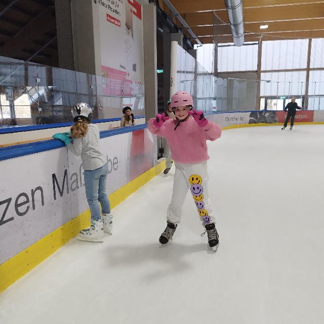 Auf dem Eis waren wir erst etwas wackelig unterwegs und mussten uns am Rand bewegen und festhalten. Hin und wieder stürzten wir auch. Aber mir der Zeit wurden wir immer sicherer auf dem Eis und hatten einen riesen Spaß. Nach ca. zwei Stunden mussten wir dann wieder die Heimfahrt antreten. Auf das nächste Eislauf-Abenteuer freuen wir uns schon sehr!
